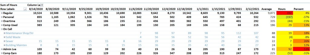 These and other high-altitude questions can be answered by aggregating data from prior pay periods and organizing them in a way that is meaningful for whoever the end user happens to be. Executive staff typically has an interest in these data, and we can create dashboards that allow them to ask intelligent questions.